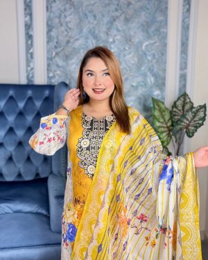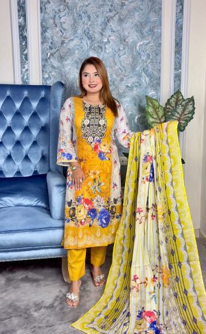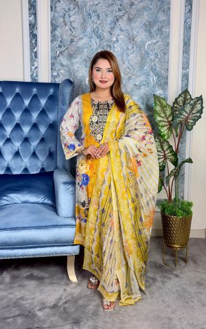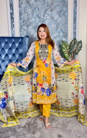 সেলাই ছাড়া সম্পূর্ণ প্রিমিয়াম কটন ডিজিটাল প্রিন্ট থ্রী পিস সেট