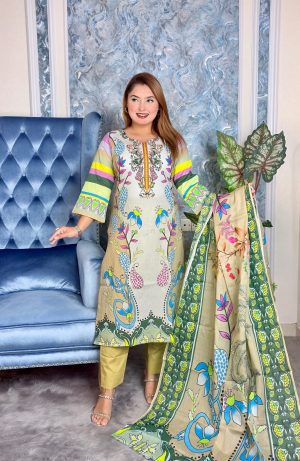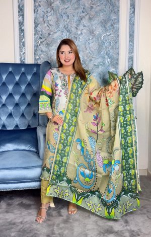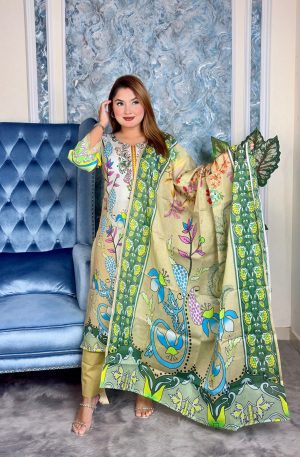 সেলাই ছাড়া সম্পূর্ণ প্রিমিয়াম কটন ডিজিটাল প্রিন্ট থ্রী পিস সেট