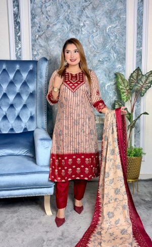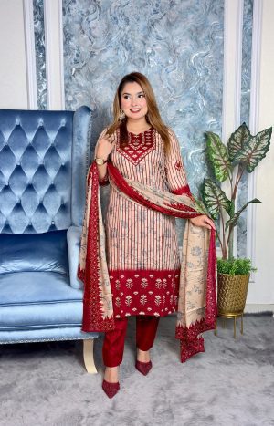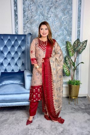 👉-আনস্টিচ প্রিমিয়াম কটন থ্রি পিস সেট=জামা + ওড়না + সালোয়ার”