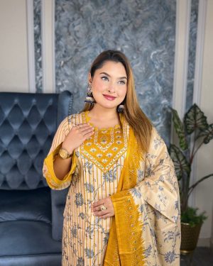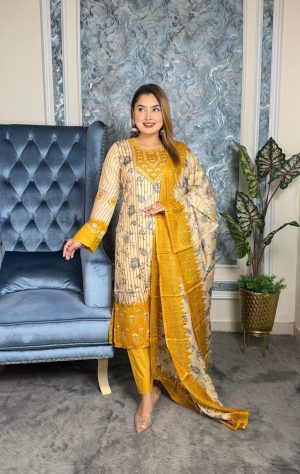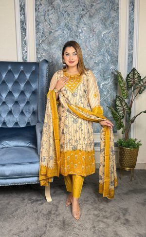 সেলাই ছাড়া সম্পূর্ণ প্রিমিয়াম  কটন ডিজিটাল প্রিন্ট থ্রী পিস সেট
