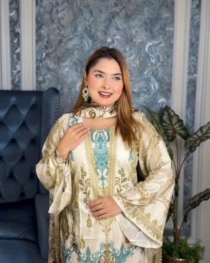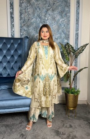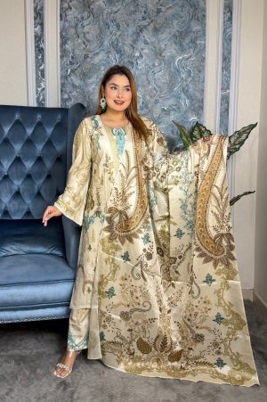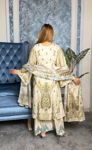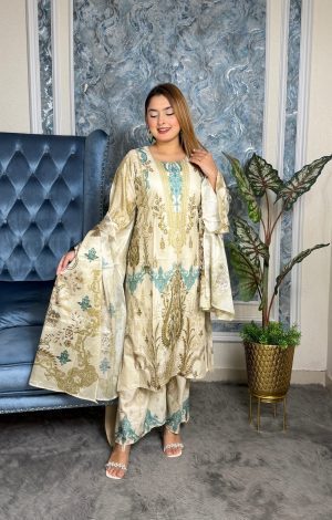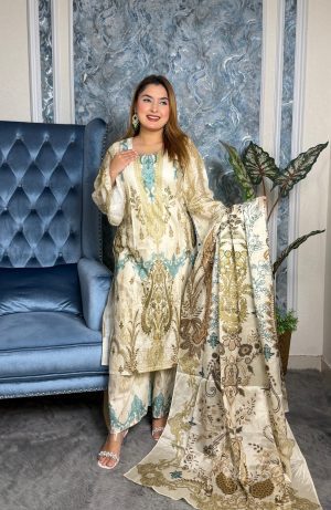 সেলাই ছাড়া সম্পূর্ণ প্রিমিয়াম কটন ডিজিটাল প্রিন্ট থ্রী পিস সেট