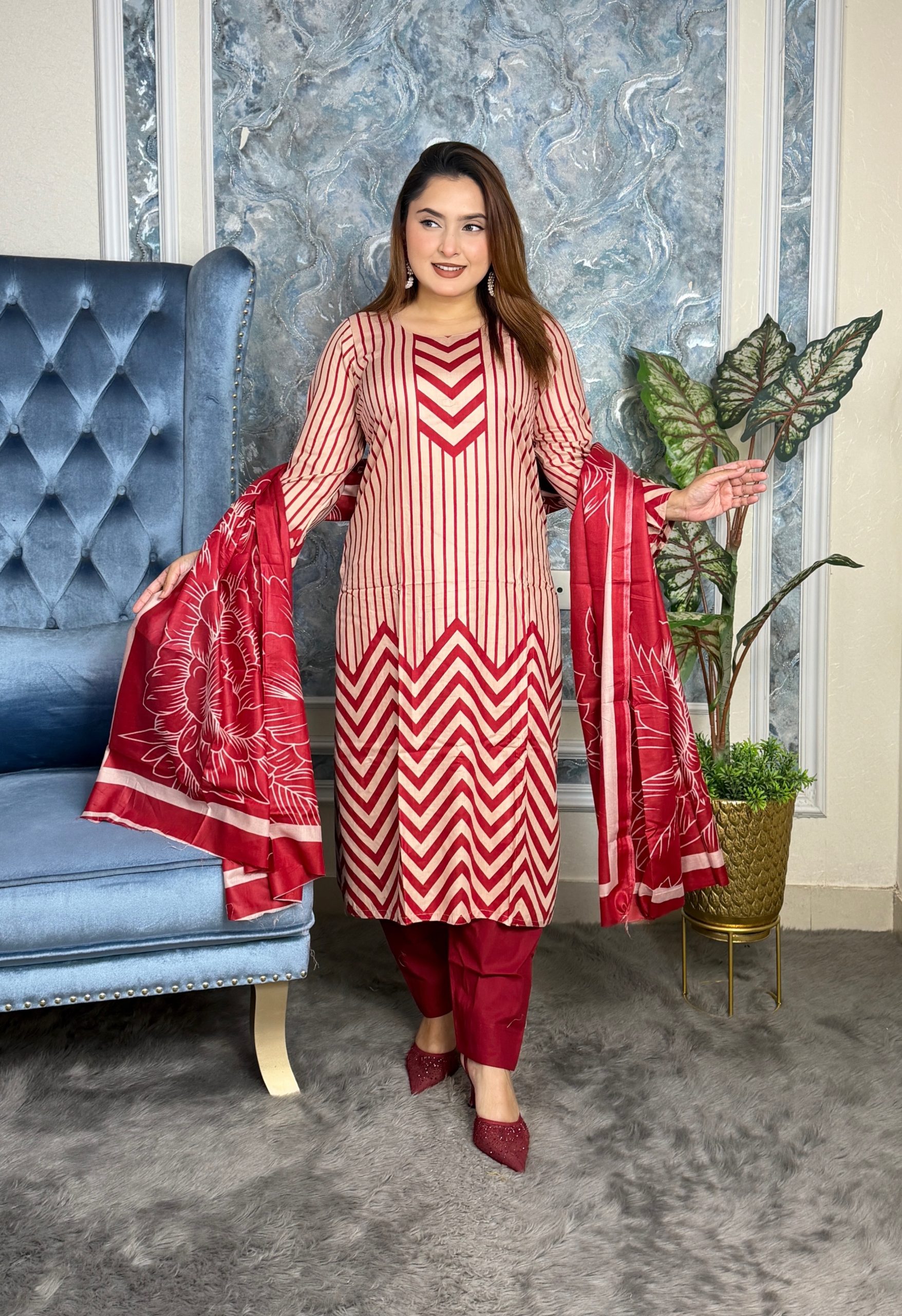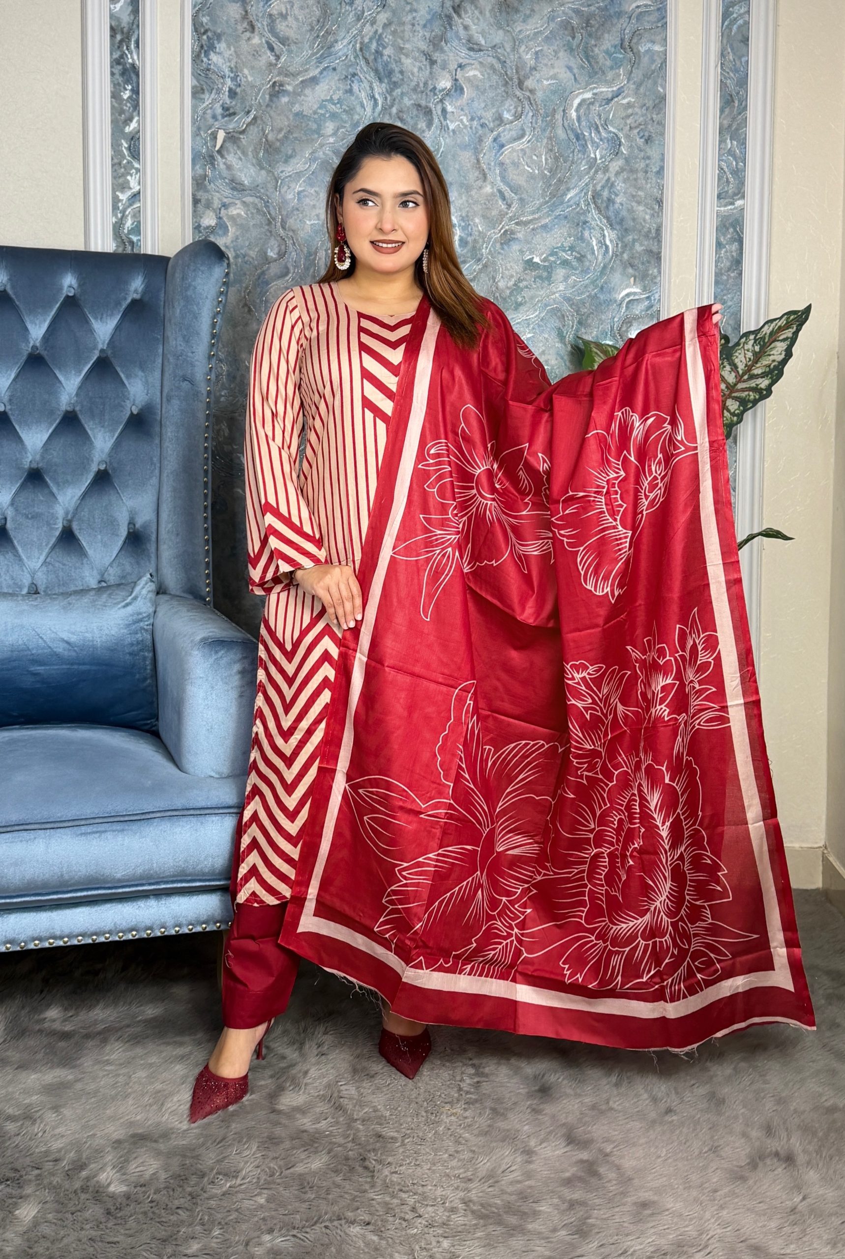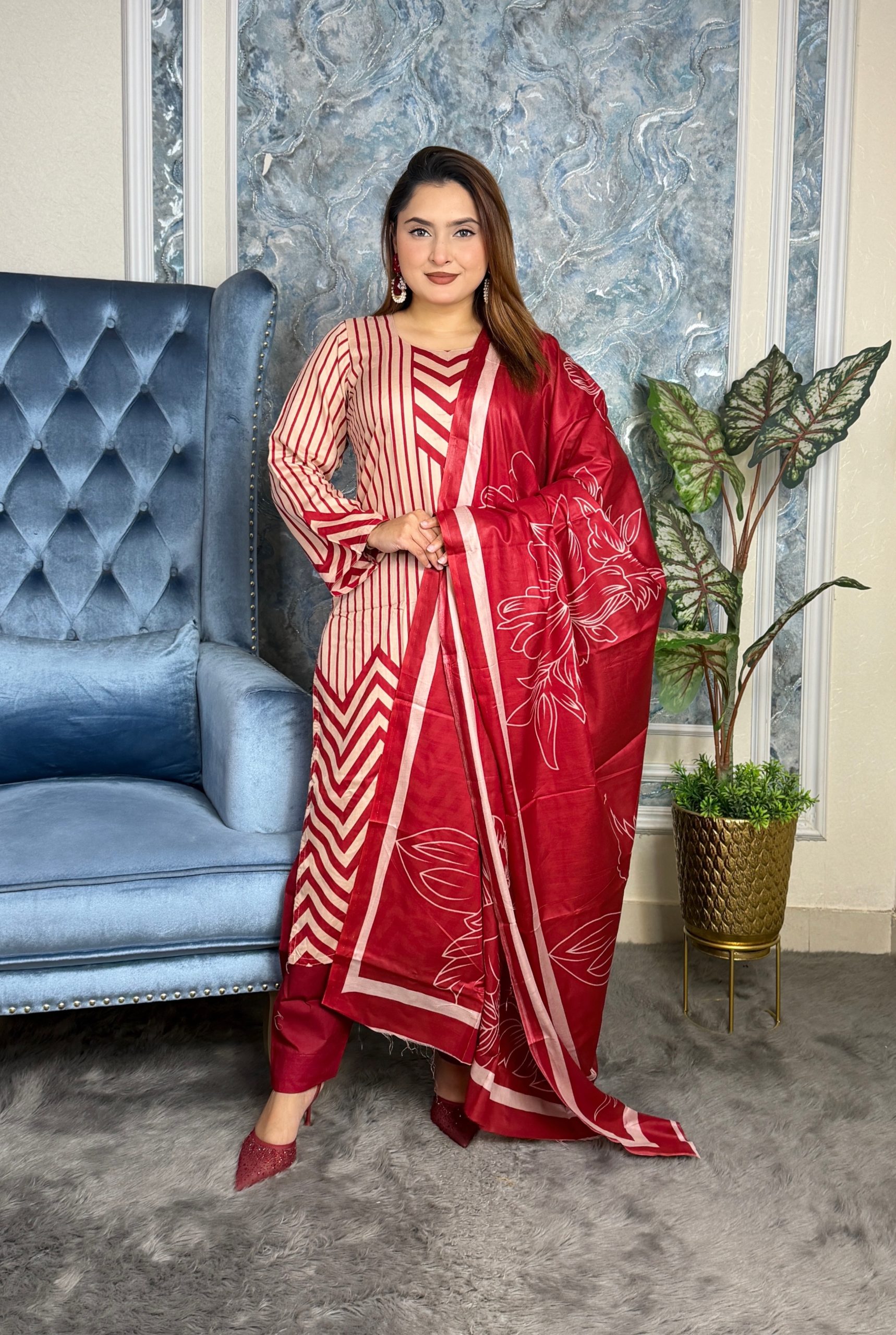 সেলাই ছাড়া সম্পূর্ণ প্রিমিয়াম  কটন ডিজিটাল প্রিন্ট থ্রী পিস সেট