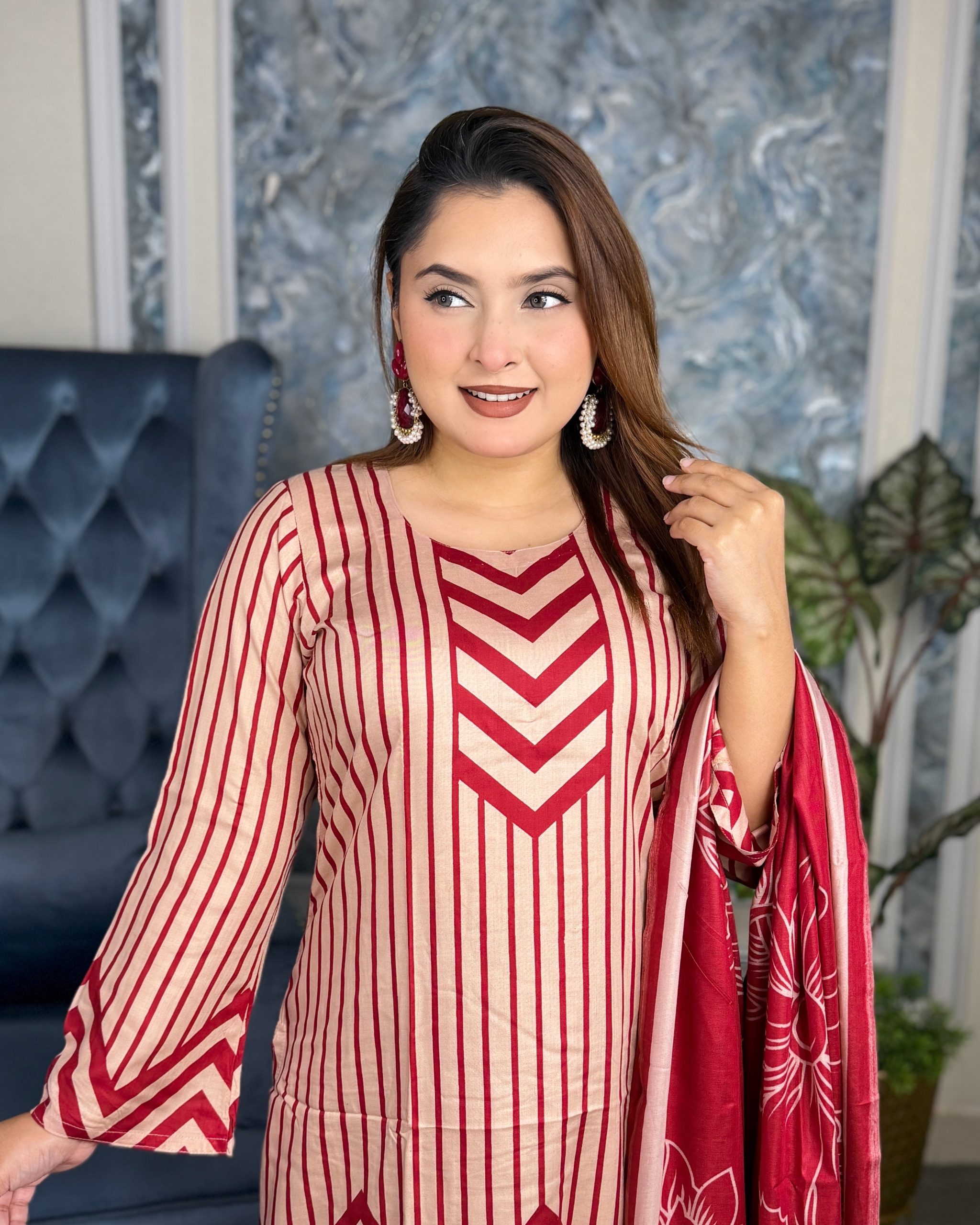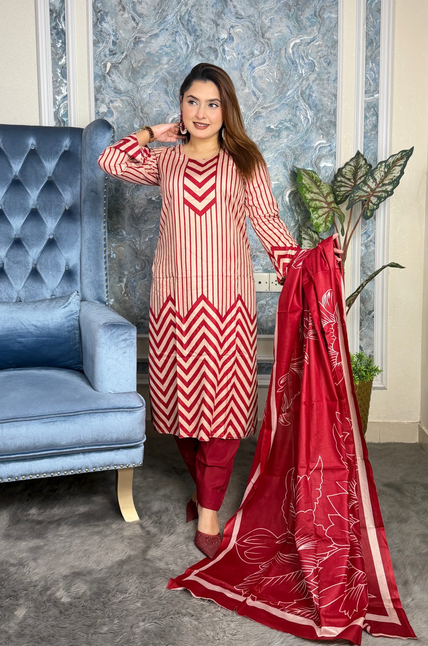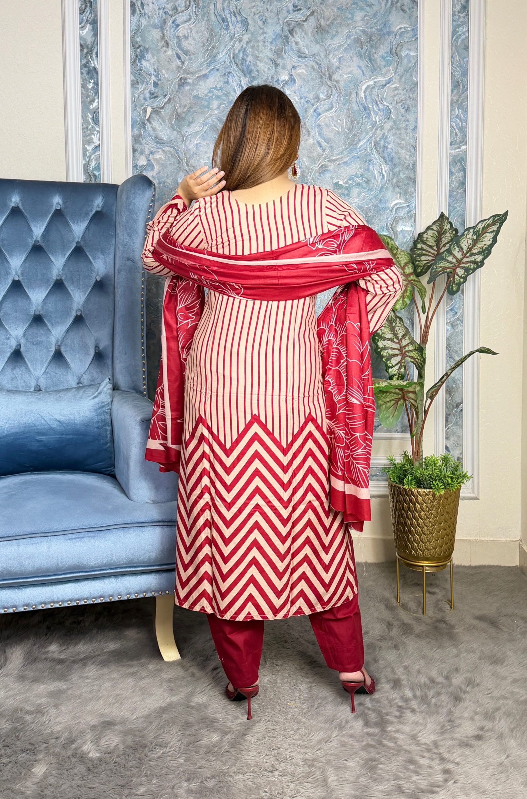 সেলাই ছাড়া সম্পূর্ণ প্রিমিয়াম  কটন ডিজিটাল প্রিন্ট থ্রী পিস সেট