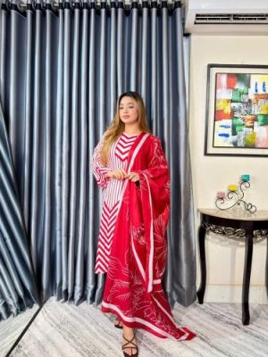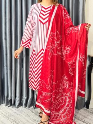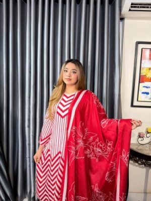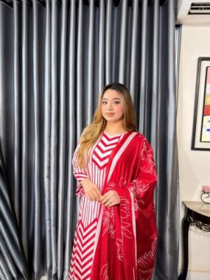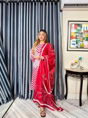 সেলাই ছাড়া সম্পূর্ণ প্রিমিয়াম কটন ডিজিটাল প্রিন্ট থ্রী পিস সেট