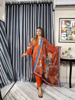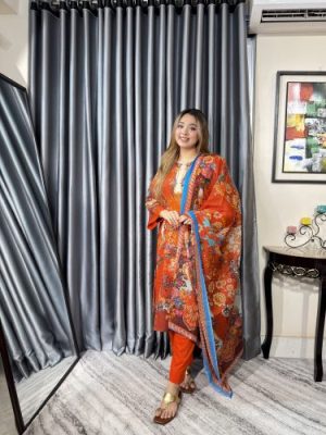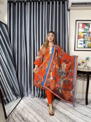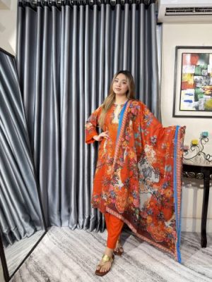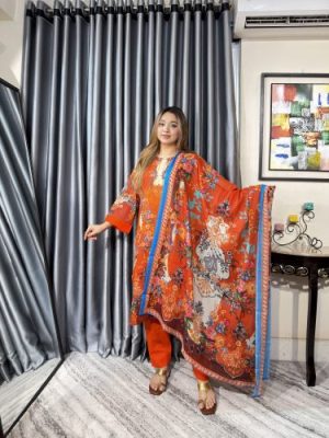 সেলাই ছাড়া সম্পূর্ণ প্রিমিয়াম কটন ডিজিটাল প্রিন্ট থ্রী পিস সেট