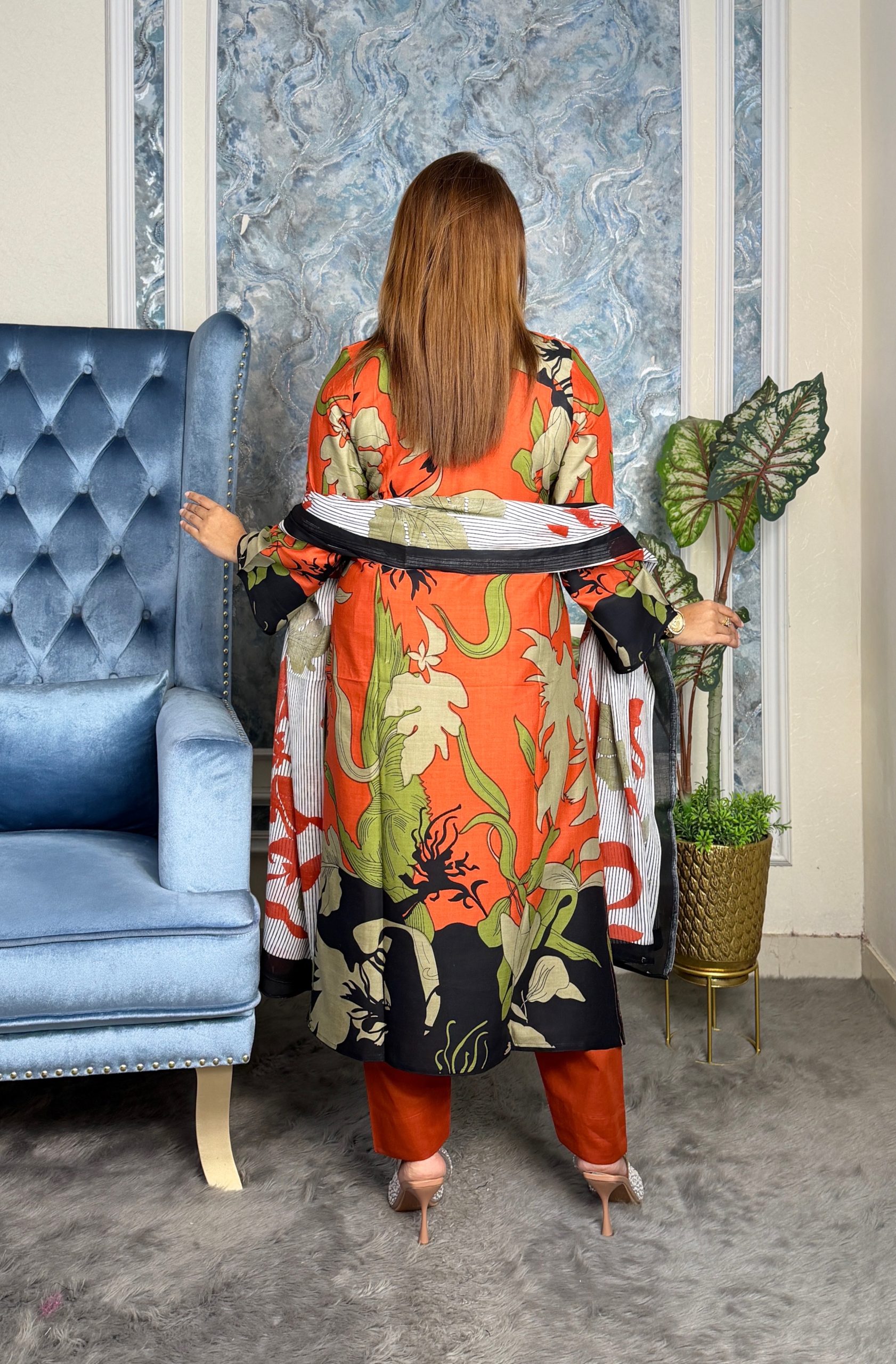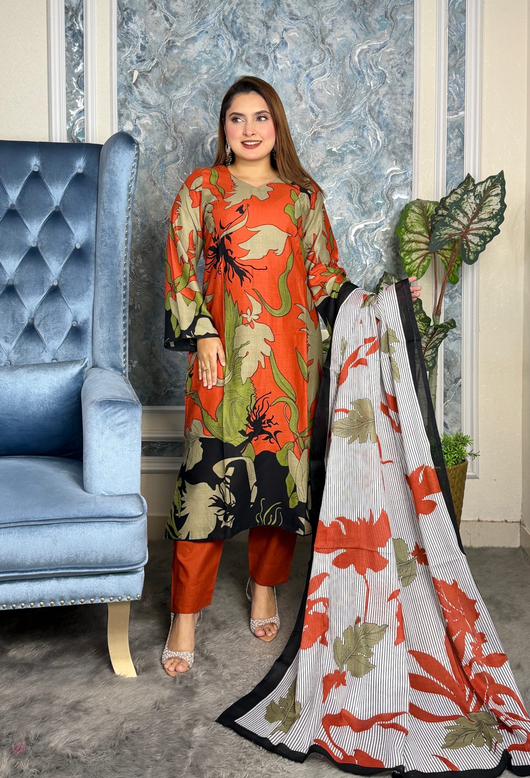সেলাই ছাড়া সম্পূর্ণ প্রিমিয়াম কটন ডিজিটাল প্রিন্ট থ্রী পিস