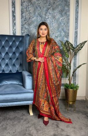 সেলাই ছাড়া সম্পূর্ণ প্রিমিয়াম কটন ডিজিটাল প্রিন্ট থ্রী পিস সেট